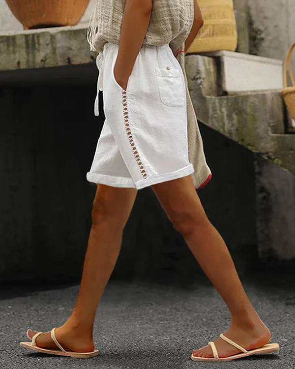 Ladies Cotton Linen V-Neck Hem Bifurcated Sleeveless Shirt