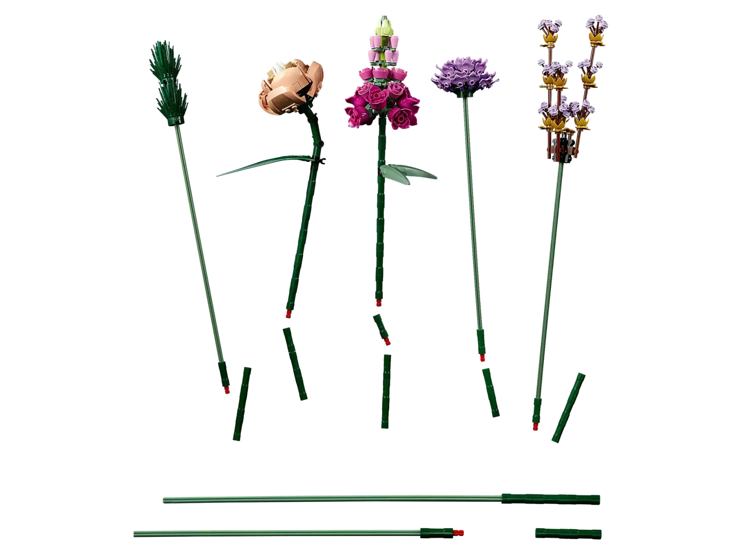 Each detail of the bouquet is made from LEttgGO components – all customizable to create a unique display. Most of the flowers have petals that are positionable so you can have fun designing different arrangements. Take the stems apart and recombine to adjust the height and shape of your flowers. Part of the LEttgGO Botanical Collection for adults, this set includes several elements made from a plant-based plastic, produced using sustainably sourced sugarcane.