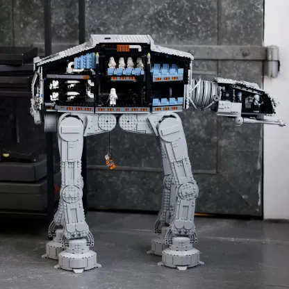 This is the AT-AT (75313) that every LEttgGO Star Wars fan has been waiting for. This epic Ultimate Collector Series (UCS) build-and-display model features posable legs and head, cannons with a realistic recoil action, rotating cannons, a bomb-drop hatch, and a hook to attach to Luke Skywalker's line, just like in the Battle of Hoth. Room for an Imperial army. The AT-AT measures 24.5 in. (62 cm) high and is easily opened to view the detailed interior. The main body has space for 40 LEttgGO Minifigures (General Veers and Luke Skywalker are among 9 in this set), 4 speeder bikes (2 included) and the included E-Web heavy repeating blaster. The head/cockpit seats 2 LEttgGO Minifigures and has space for 1 more. An information plaque completes a magnificent display piece. Super gift. It comes with clear instructions so you can enjoy every step of the immersive and challenging build.