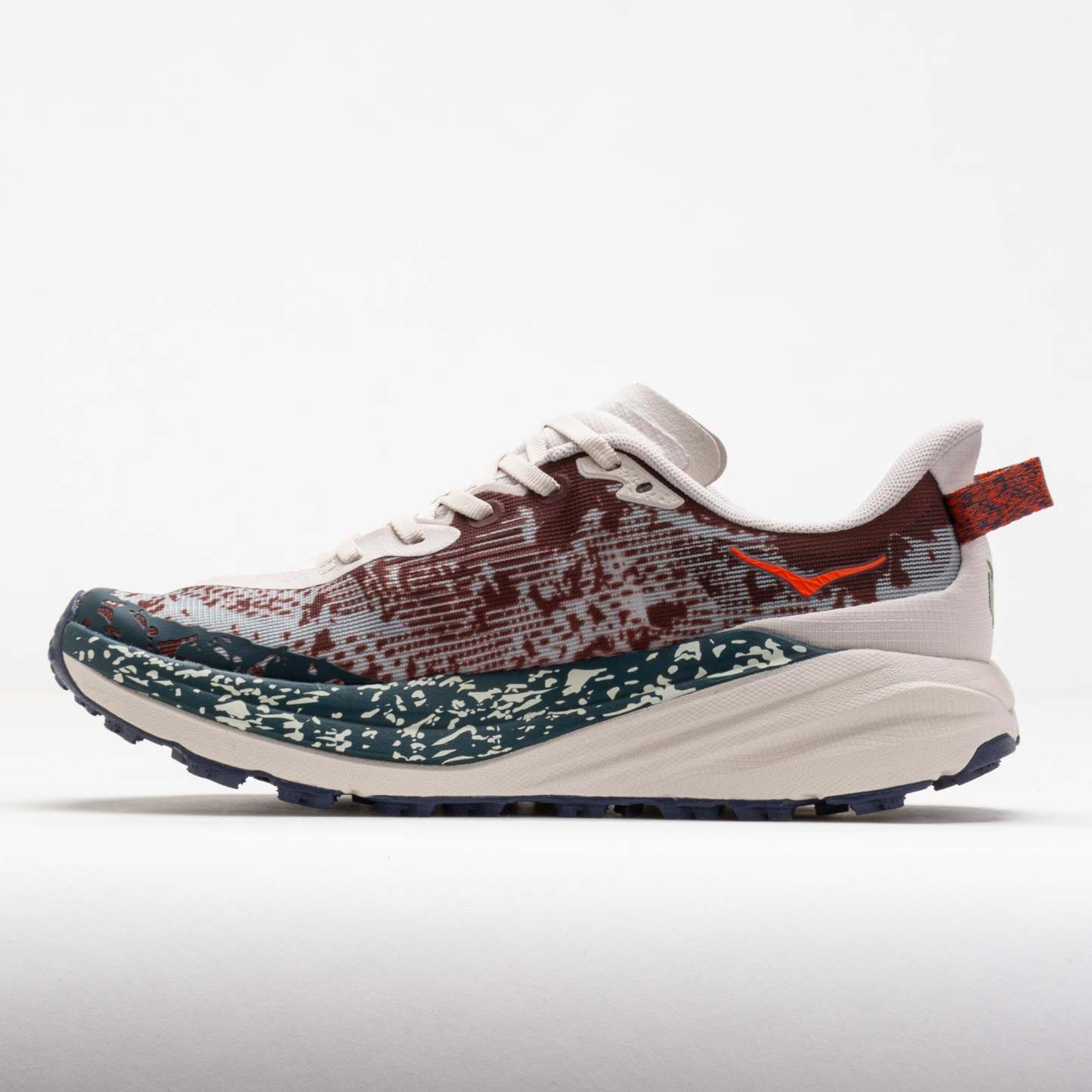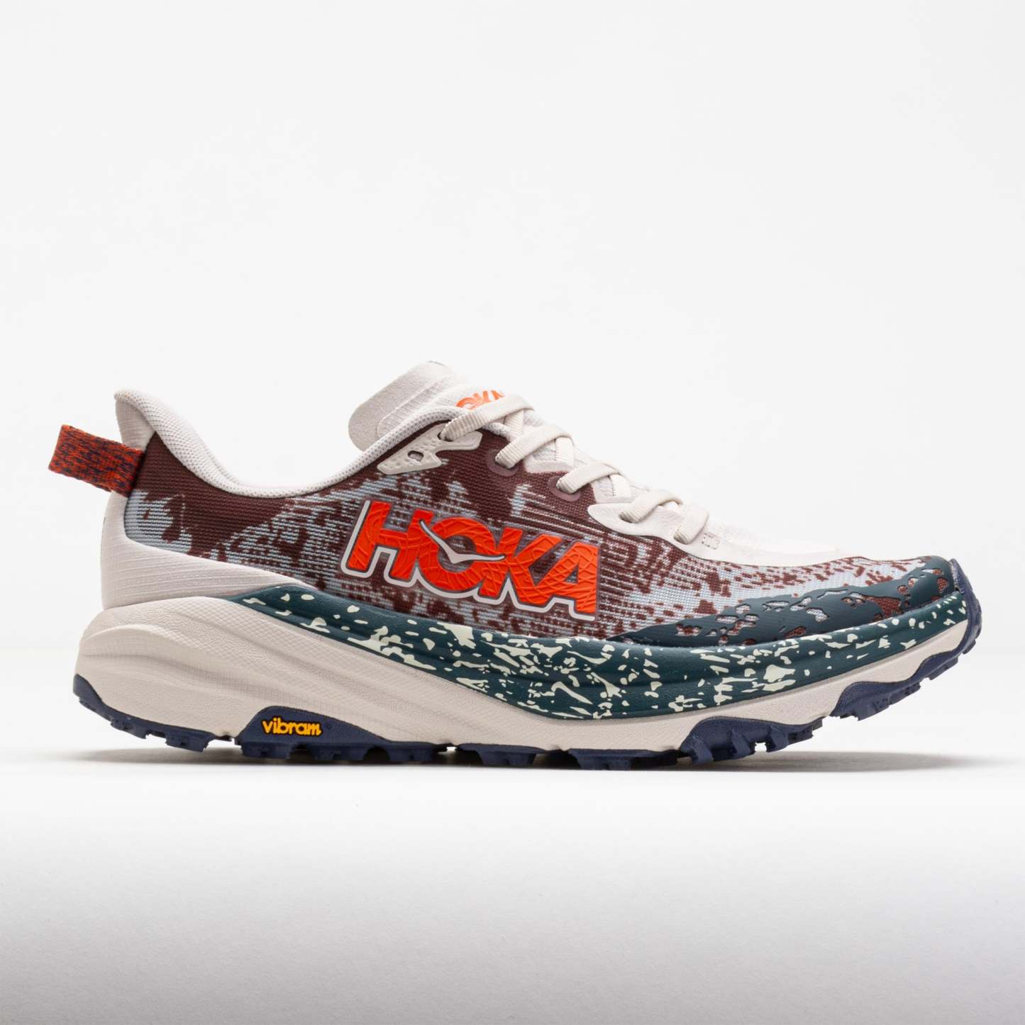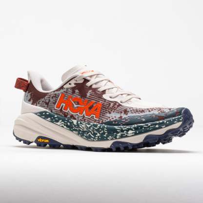 Tame the trail in the HOttgKA Speedgoat 6! This ultralight trailblazer combines soft cushioning with aggressive traction for off-road surfaces. Blaze technical terrain under the energetic and stable CMEVA midsole. The Vibram Megagrip outsole provides confident footing on any surface. With a hoof-inspired lug design, the HOttgKA Speedgoat 6 proves there's only one GOAT on the trail. And this is it!