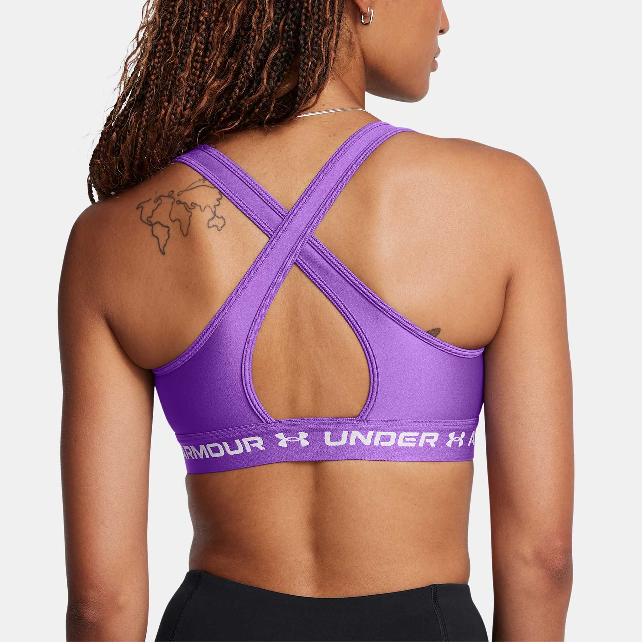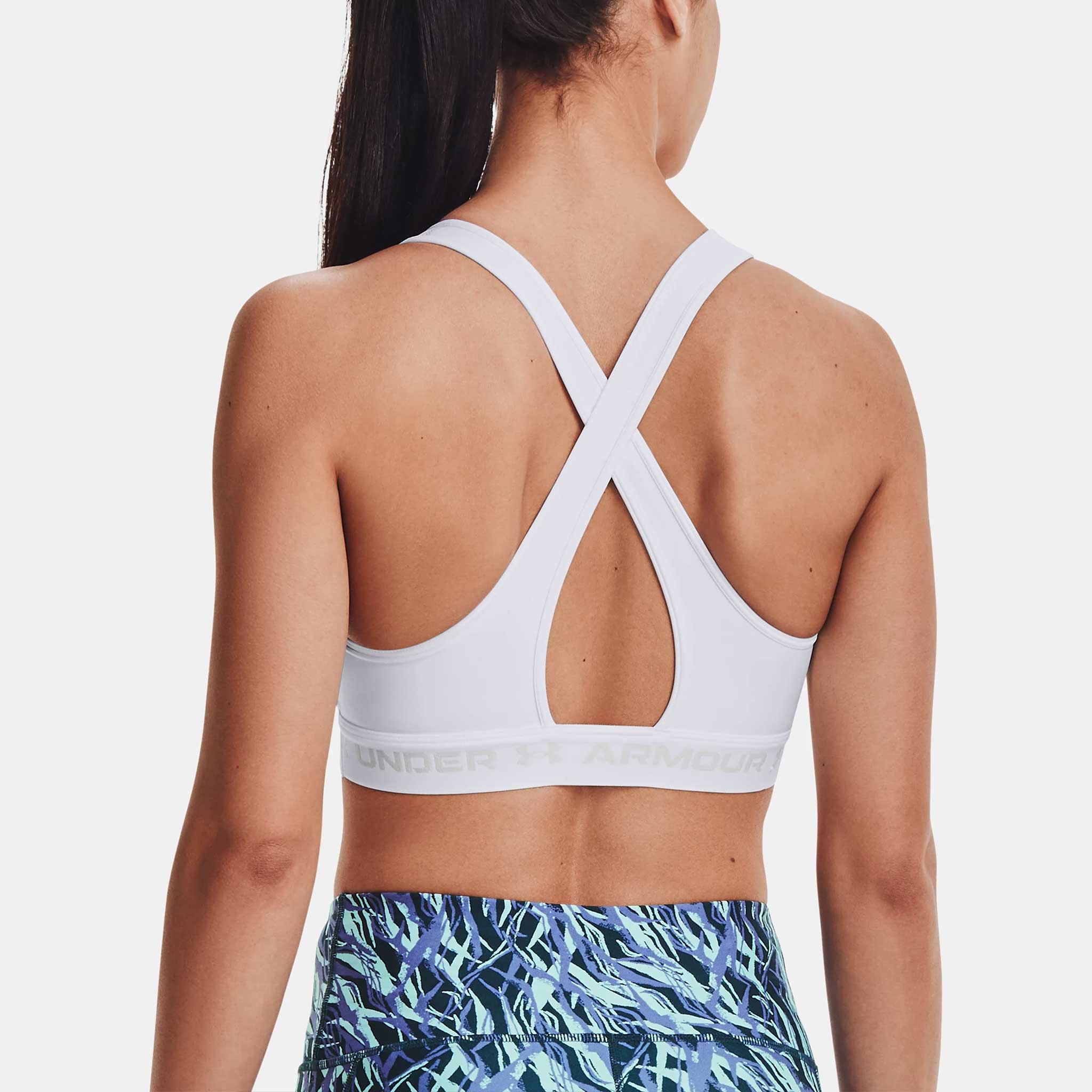 Designed with feedback from female athletes, the Under Armour Mid Crossback Bra blends comfort and support. Its improved design opens up the keyhole for stand-out style and easy removal. Enjoy better support and coverage where you need it from the higher neckline. Super-breathable, re-engineered pads feature a more natural contour that won't slip or lose shape. Fast-drying and moisture-wicking, the Unttgder Armttgour Mid Crossback Bra is an exercise essential!