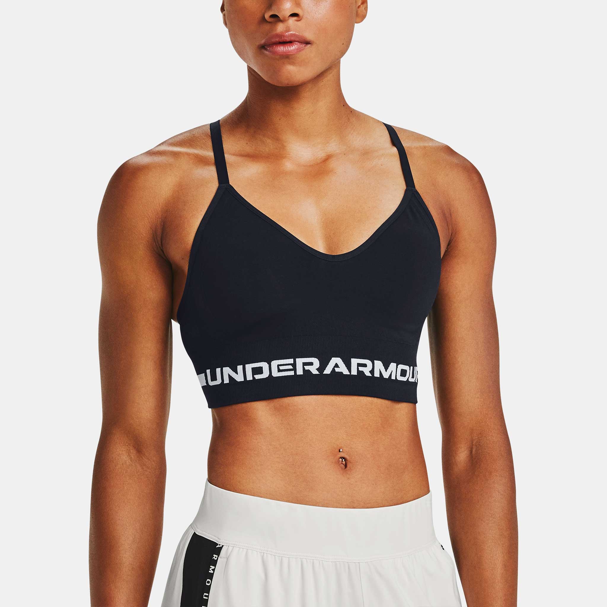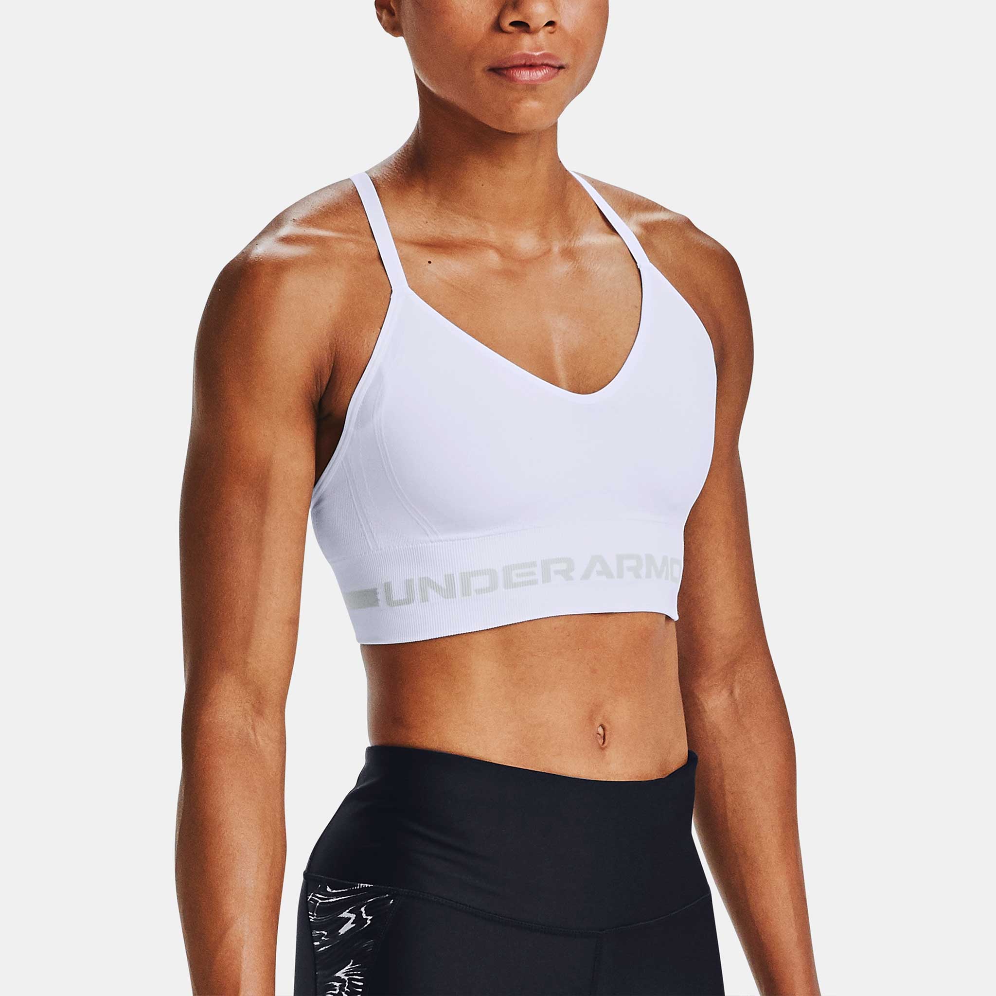 Stay supported during low-impact activities in the Under Armour Seamless Low Long Sports Bra. Featuring a longer cut, adjustable straps and a seamless fit, this sports bra keeps you in complete comfort. Stretchy, breathable and quick-drying, the Unttgder Armttgour Seamless Low Long Sports Bra supports your goals!