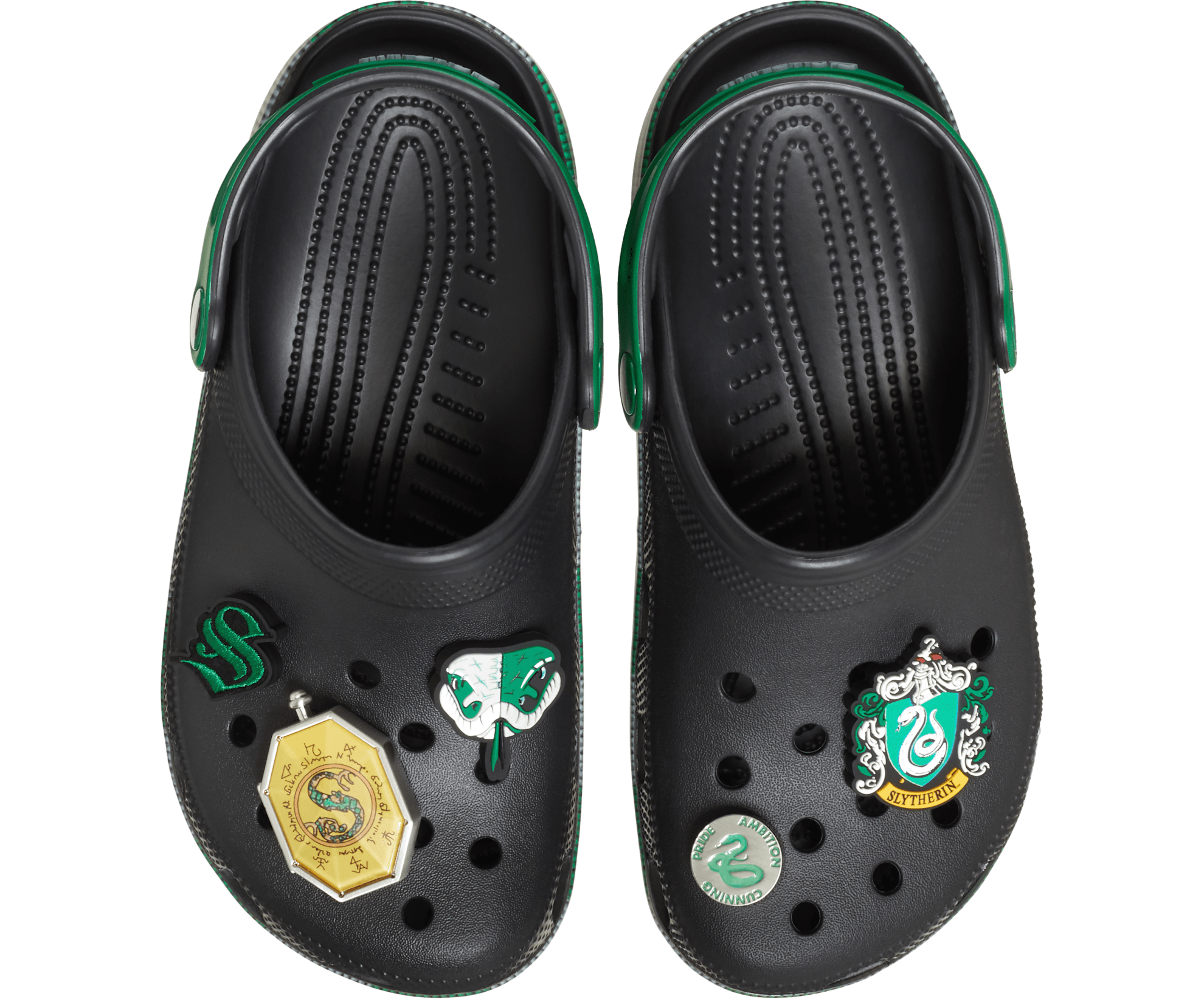 - Exclusive Slytherin-inspired Jibbitz™ charms