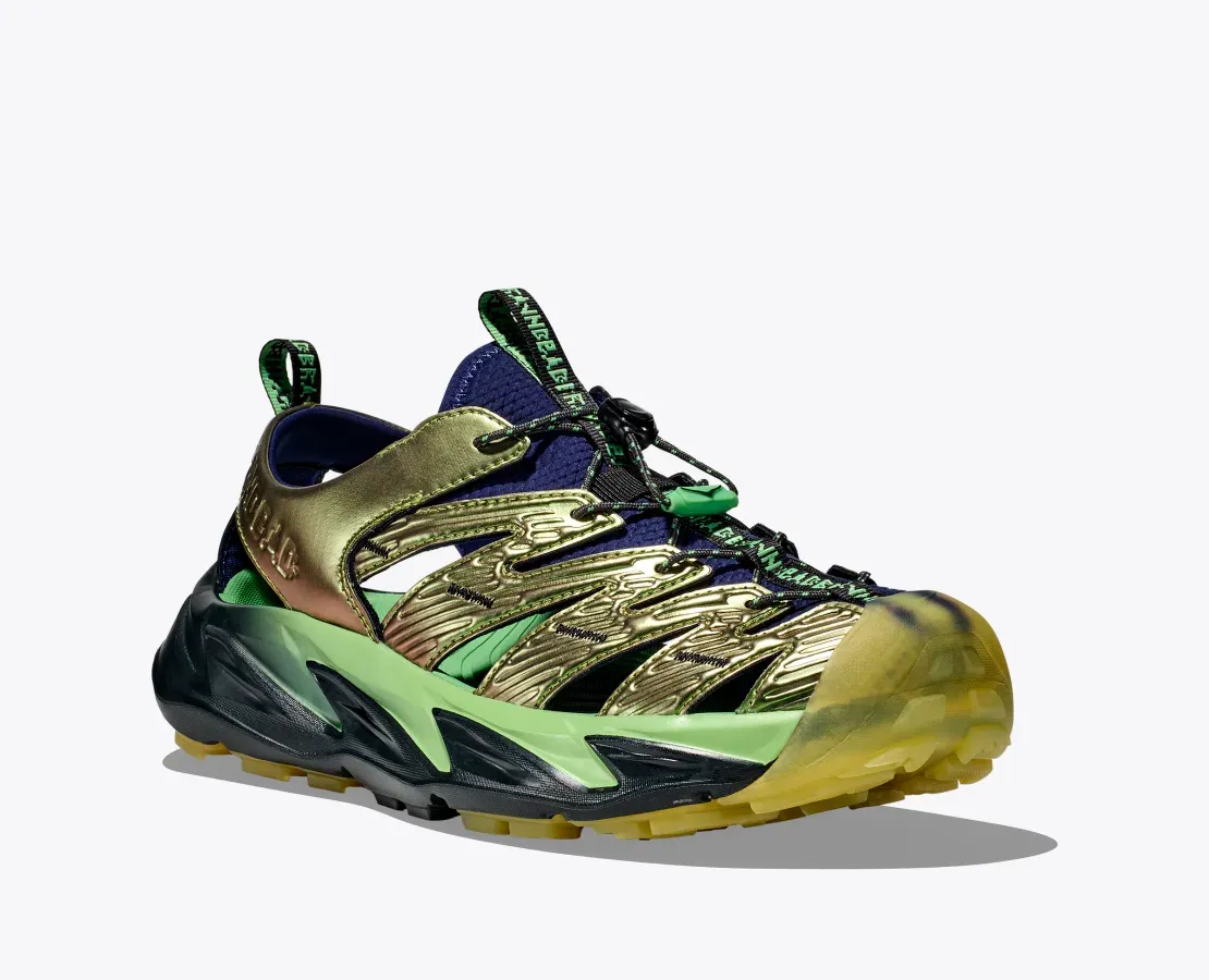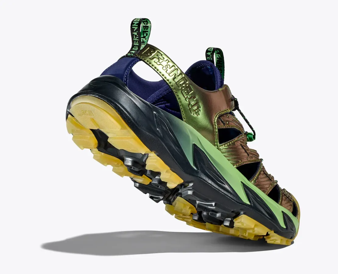 A bold mashup created in conjunction with the iconic streetwear brand, Brain Dead, our Hopara hiker takes on an edgy new look this season. Updated with an iridescent upper and textured neoprene tongue, this versatile water sandal easily navigates wet and dry terrain with a sticky rubber outsole, rubber toe cap, strategic drainage cutouts, and a quick-lace system.