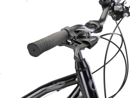 A 28-inch hybrid bicycle with fork suspension for everyone who is looking for a robust everyday companion for daily use through the terrain and for city rides. The 21-speed Shimano derailleur gears gives you a smooth gear ratio for all riding conditions. The Life 28-inch hybrid bicycle is an excellent bicycle. The bicycle is equipped with front and rear lights and complies with German road traffic regulations. The bicycle is delivered 85% pre-assembled. The final assembly of the bicycle is done by the customer. The tools are included in the package contents. The pedals, handlebars, bell, front light, saddle and front wheel must be assembled by the customer. The brakes and gears are mounted and only need to be adjusted. The link to the assembly video can be found on the accessories packaging.