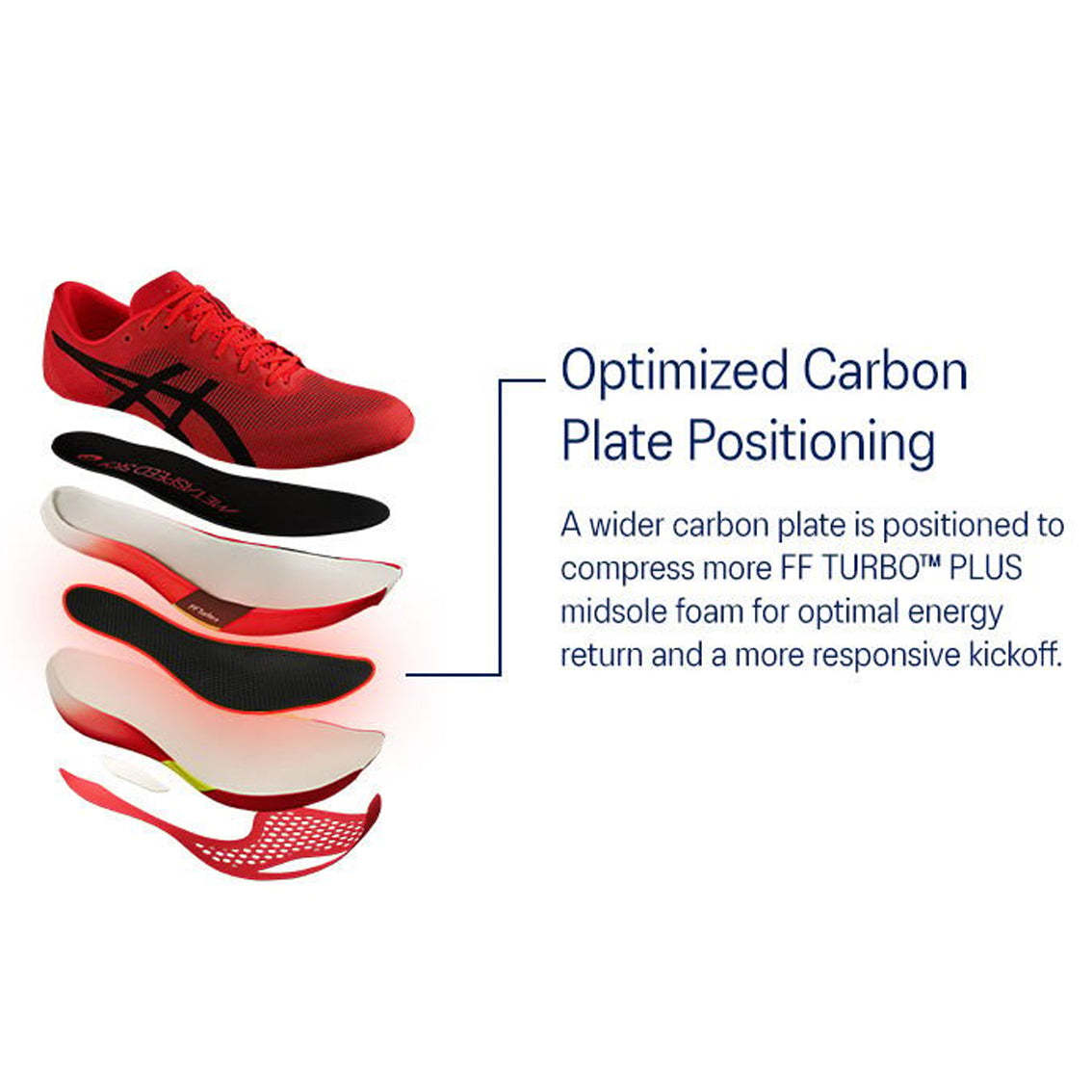 - Updated wider carbon plate geometry and positioned closer to foot