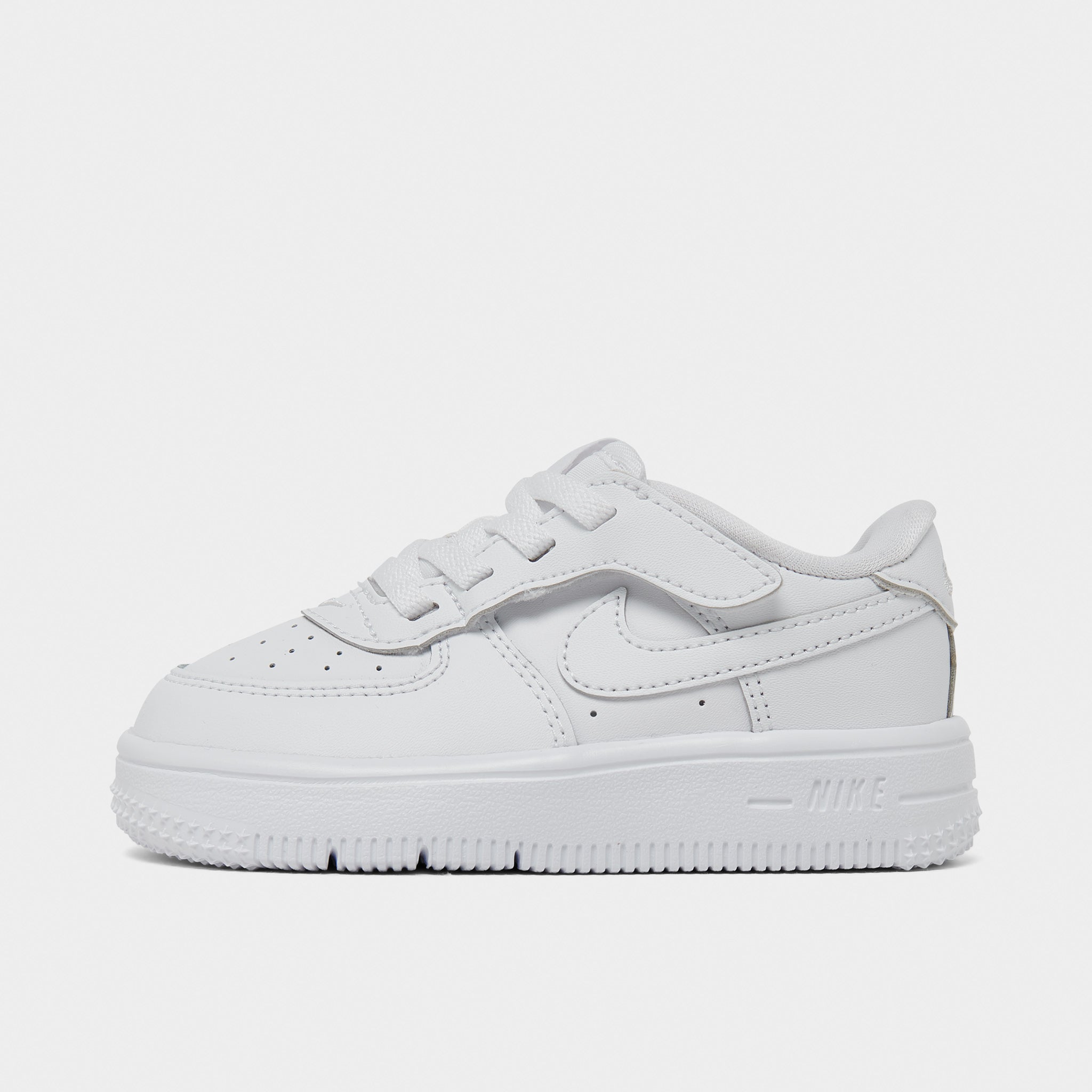 The Nike Air Force 1 EasyOn TD skips fussy laces to get your little one playing faster. The stitched-down laces lift up to reveal hook-and-loop closures, allowing tiny feet to slide in that much easier.