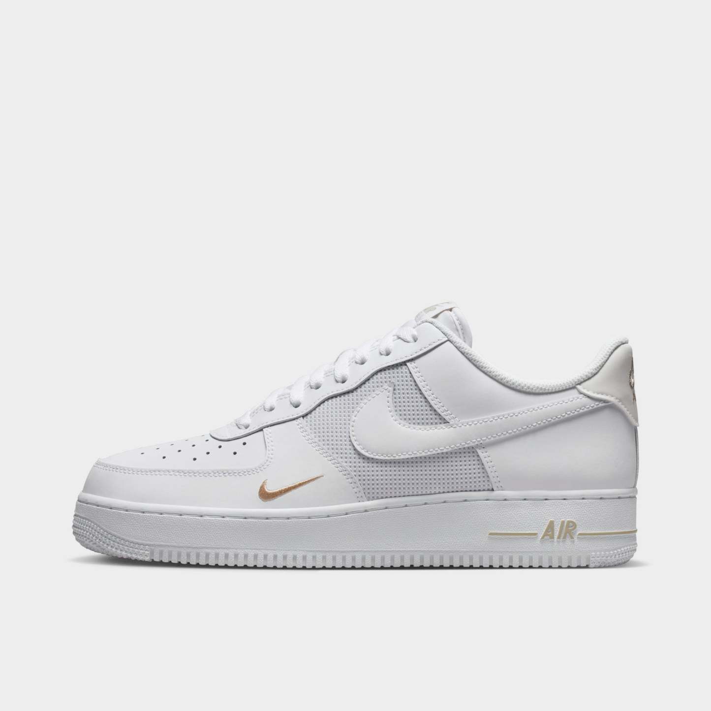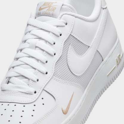 The Nike Air Force 1 White/Silver refreshes a timeless icon with sleek detailing and everyday versatility. Its smooth leather upper softens and gains character with wear, while classic Air cushioning ensures comfort from morning to night. A low-cut, padded collar keeps the look streamlined, and perforations at the toe promote airflow. Finished with a durable rubber outsole for dependable grip, this AF1 balances heritage design with modern wearability.