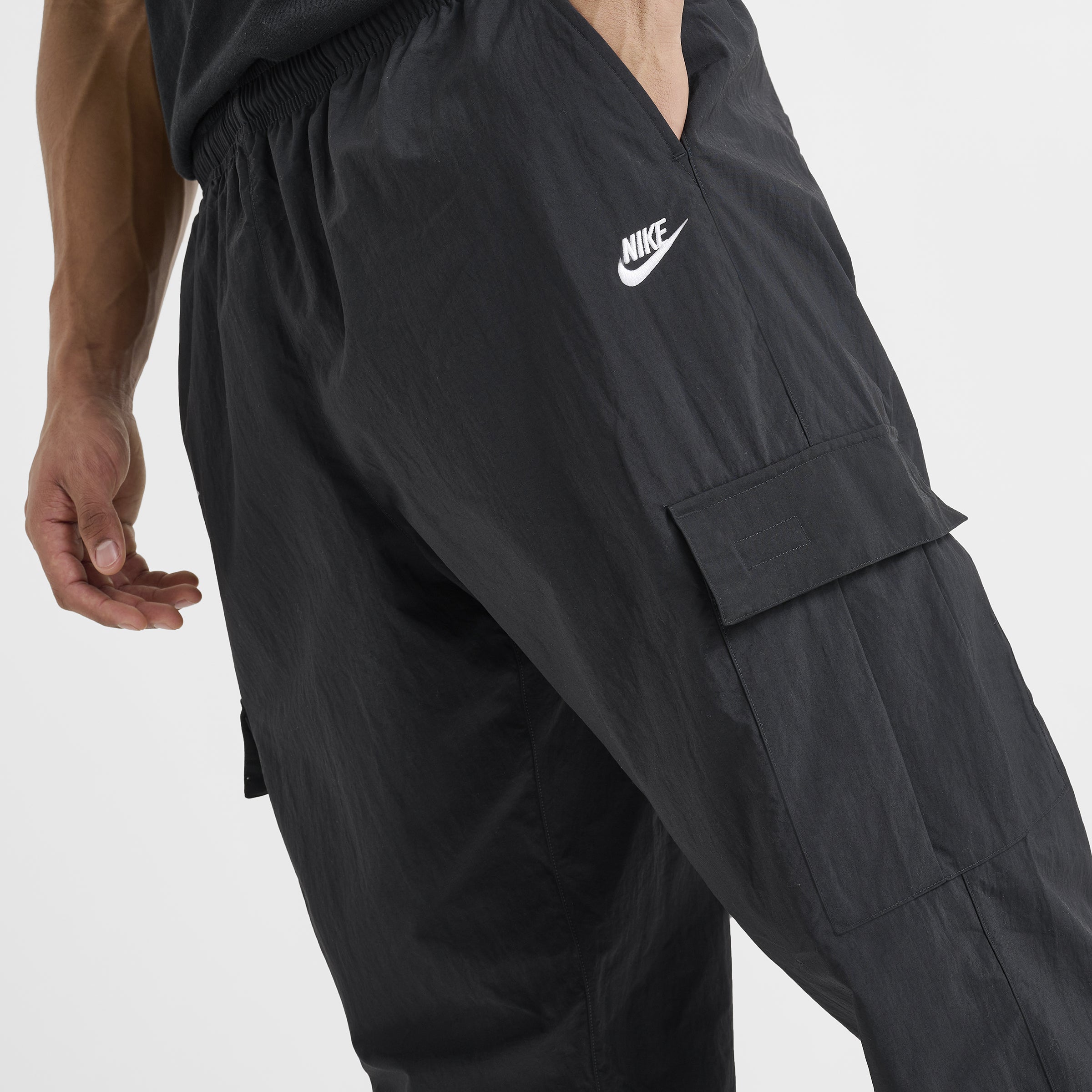 Keep it comfortable and functional in the Nike Club Woven Cargo Pants. These lightweight pants feature a smooth taffeta fabric, elasticated waistband with internal drawcords and cuffed ankles for a style that lets you show off your kicks while combining sport with classic cargo pants.