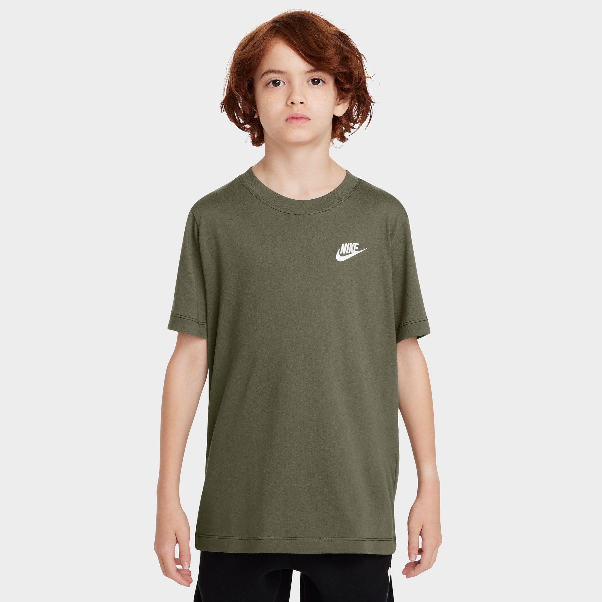 The Nike Sportswear Juniors' Embroidered Futura T-shirt is made with everyday cotton in a simple design for easy wear, day in and day out. Layer it up in the winter or keep it cool in the summer, this classic tee transcends the seasons and trends.