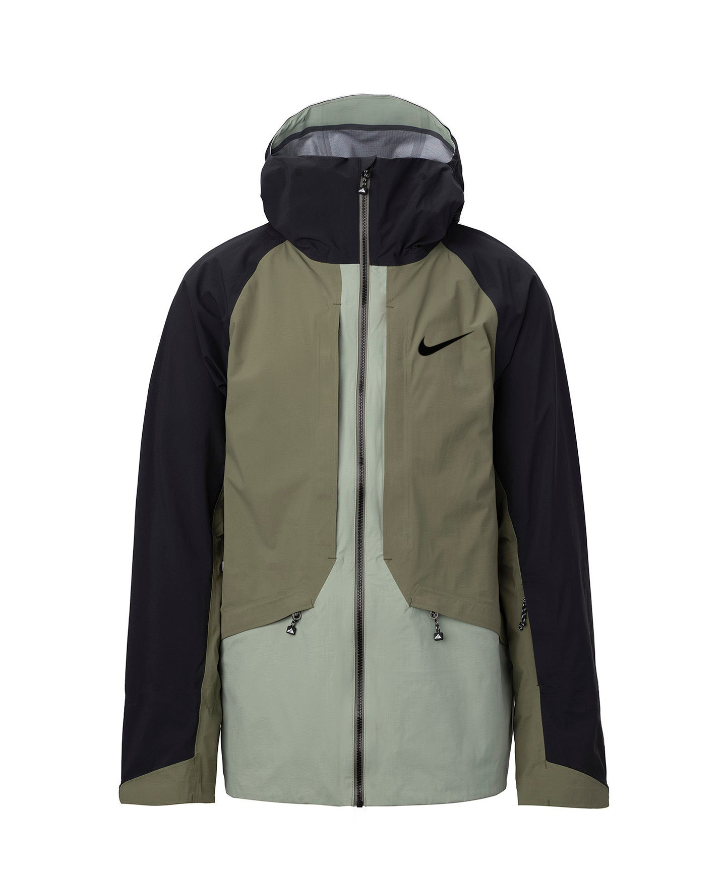 - Interior zippered mesh pocket with media port and a large mesh drop pocket with elastic binding; plus a pass pocket on lower sleeve and spacious hand pockets with hem drawcord adjustment inside.