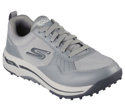 The right support makes a world of difference with Skechers GO GOLF Arch Fit® - Line Up. This lace-up spikeless golf design features a water-repellent mesh and synthetic upper with a removable Arch Fit® insole and Goodyear® Performance Outsole.
