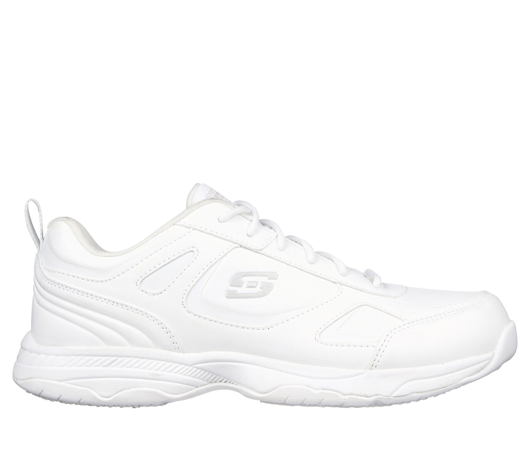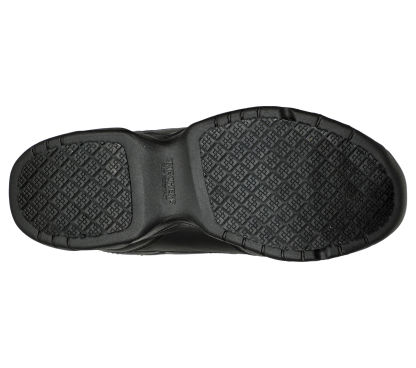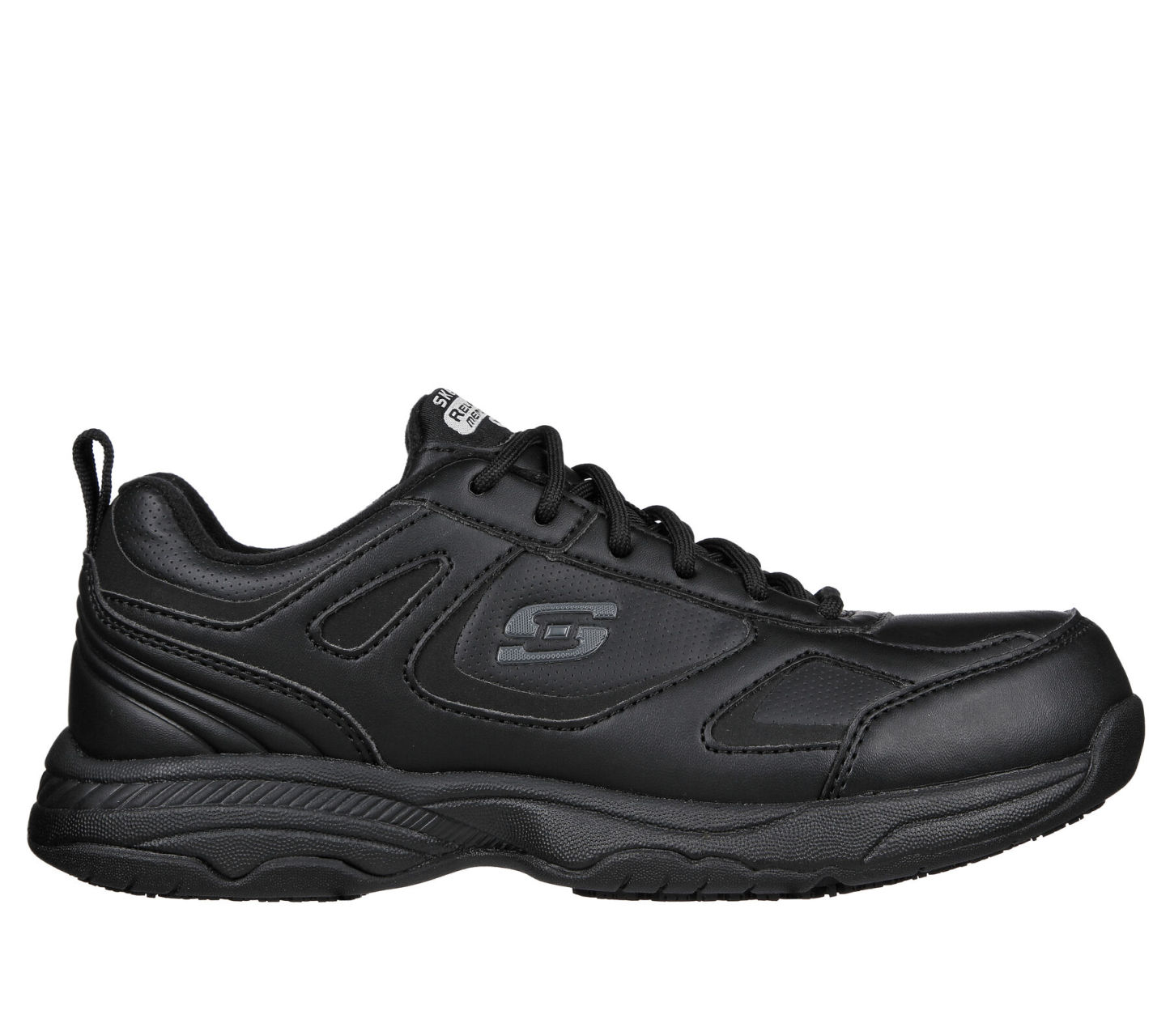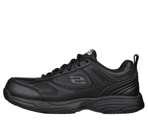 Keep yourself comfortable and safe in Skechers Work Relaxed Fit®: Dighton SR. Smooth leather and synthetic upper on a lace-up sporty casual slip-resistant sneaker with cushioned Memory Foam insole.